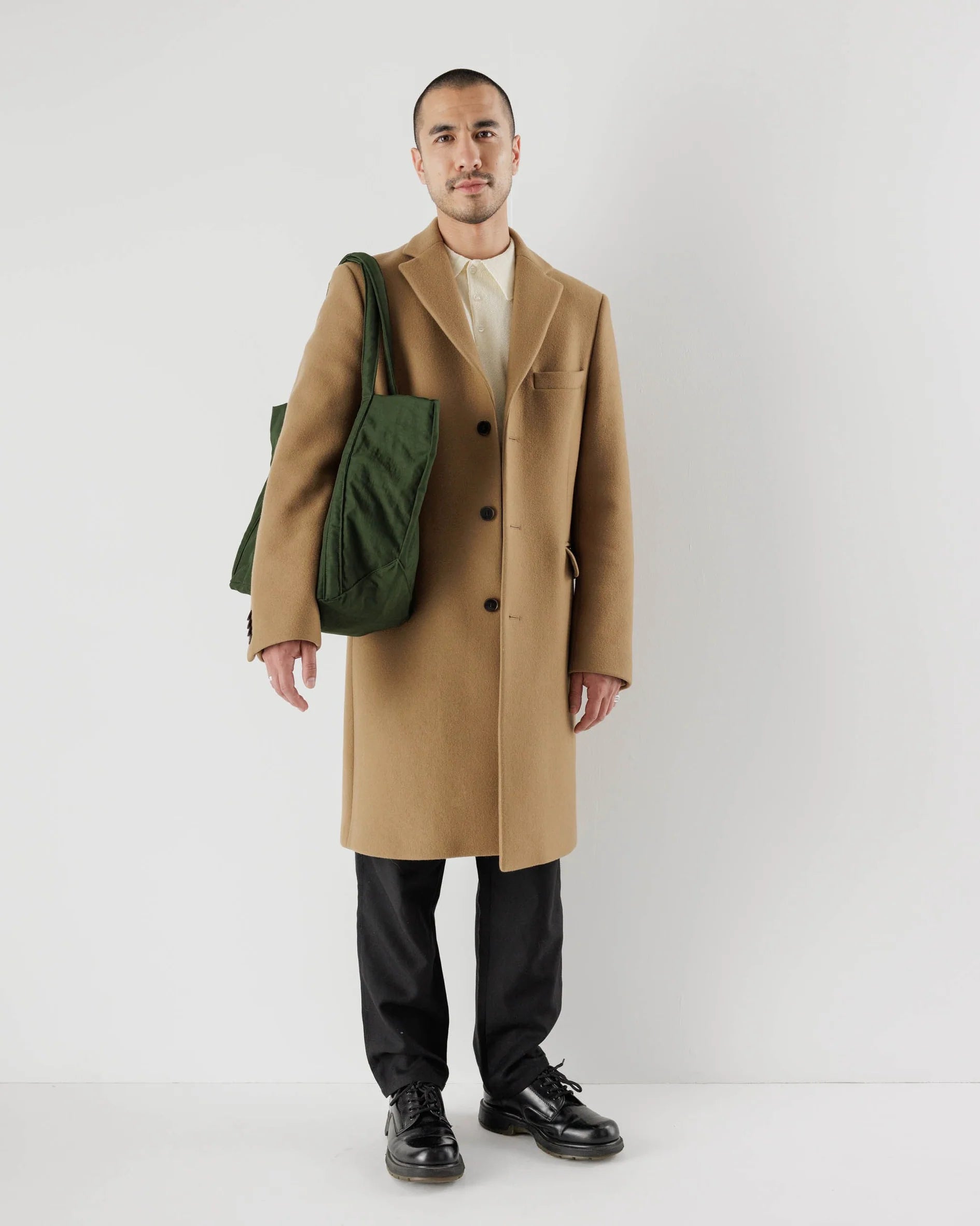 Top zip closure, exterior pocket, and packs into its own detachable interior pouch for easy storage. Recycled heavyweight nylon. Machine washable.