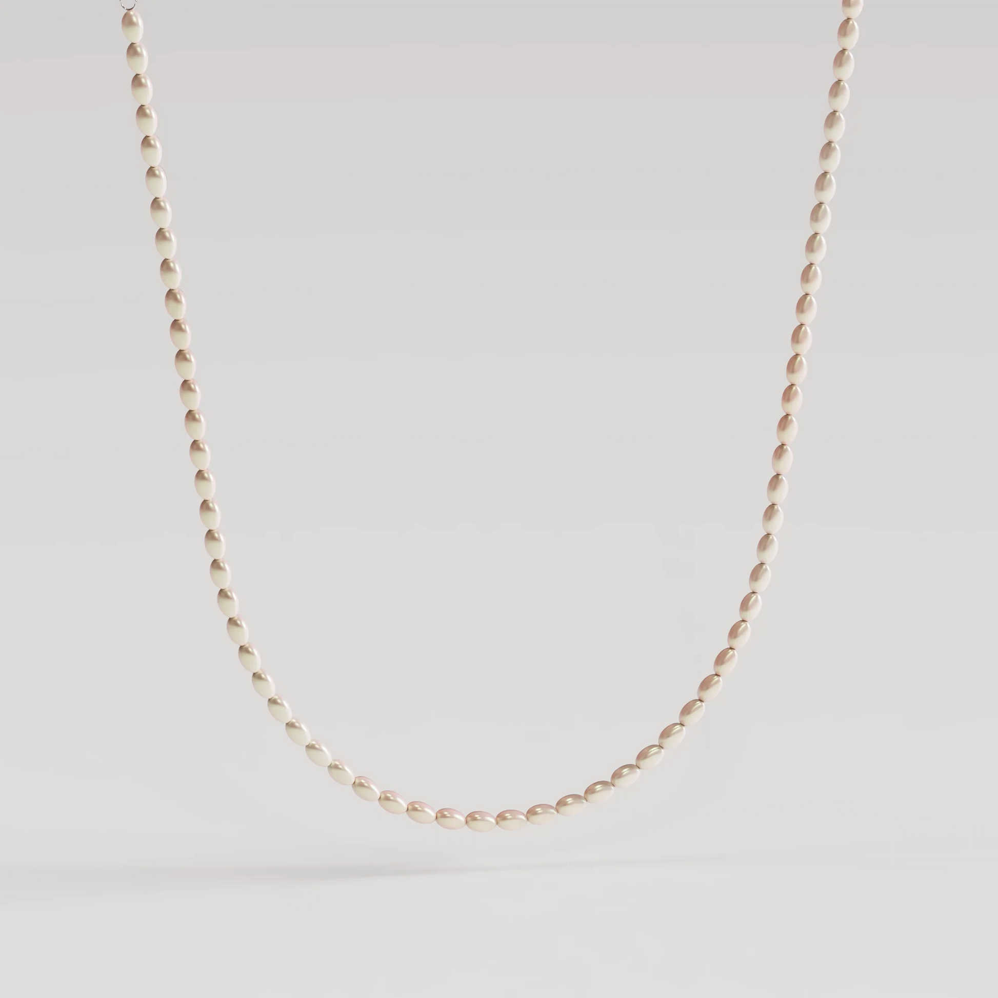 This pearl necklace is made with genuine obovate freshwater pearls, hand-strung locally. With a 2-inch extender, this piece can be worn at your desired length.