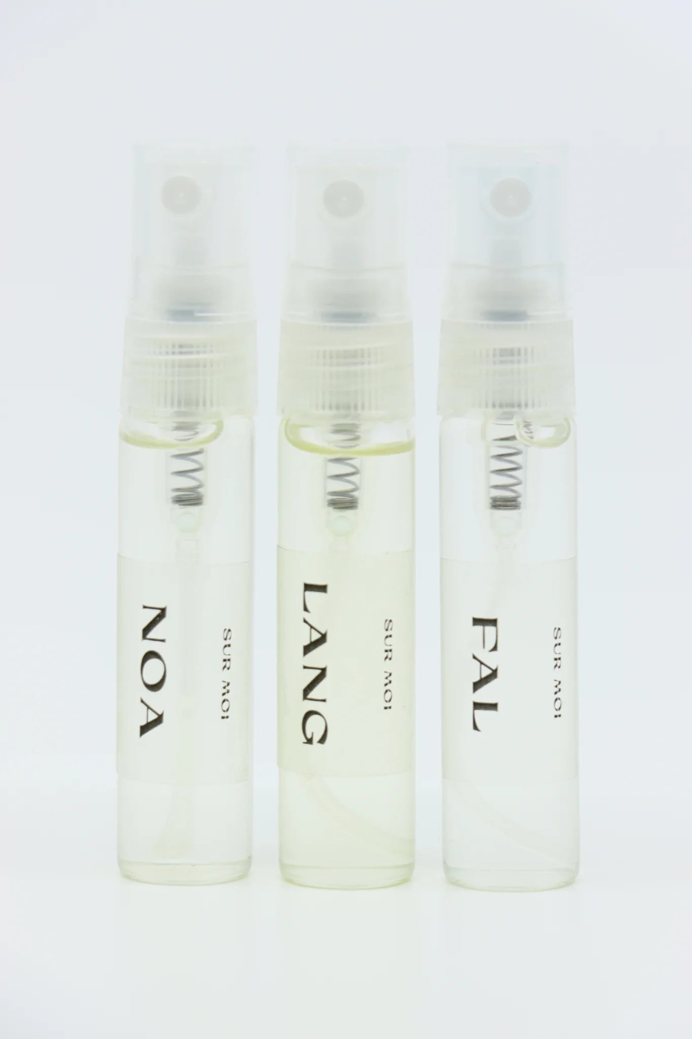 Why have one when you can have them all? Enjoy a sample set of each of HYM in a 5ml clear glass atomizer spray perfume bottle.