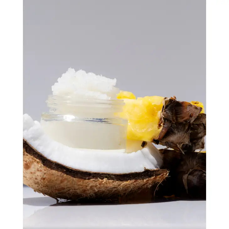 Piña Colada Lip Exfoliator: This triple-action scrub exfoliates, plumps, and conditions lips. A blend of fine Sugar Crystals, Coconut, and Jojoba Oils buffs away flaky skin and reveals soft, full, and smooth lips. Naturally scented with Piña-colada flavour.