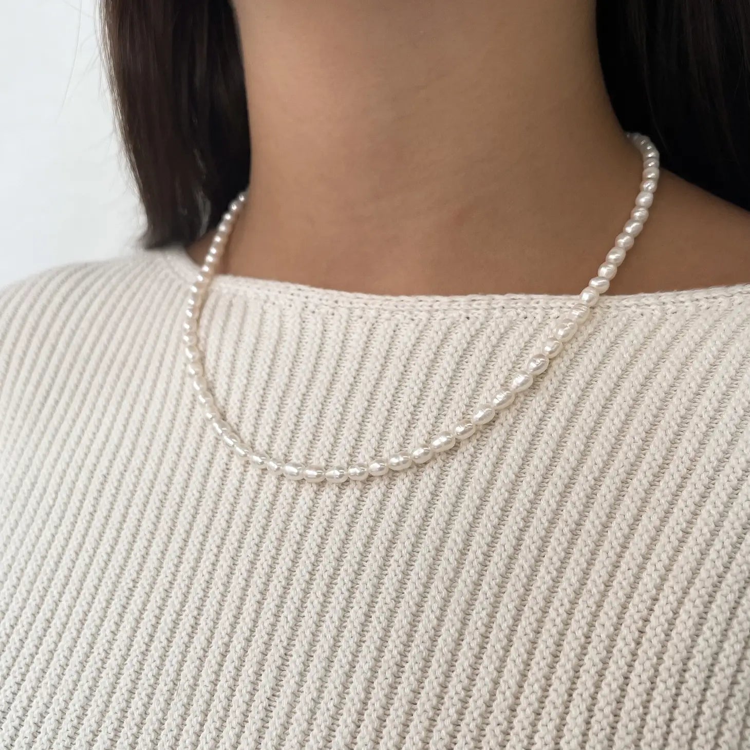 Freshwater pearl choker necklace with gold-plated .925 sterling silver extender.