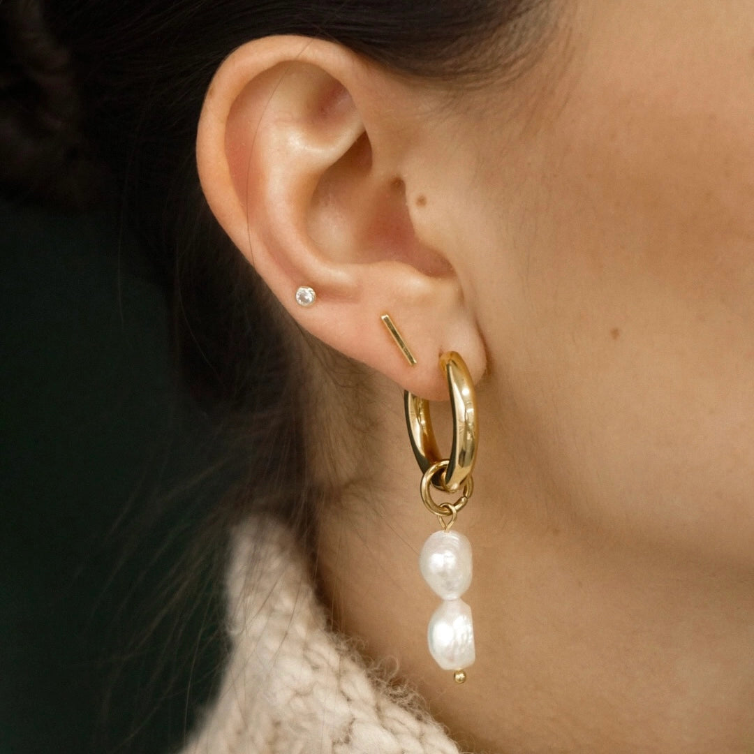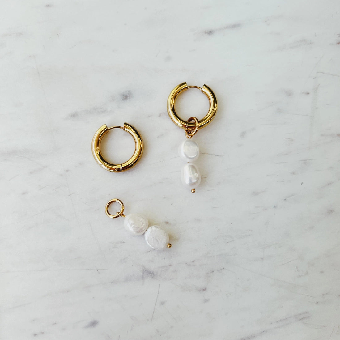 18K gold plated stainless steel earrings adorned with two freshwater pearls.