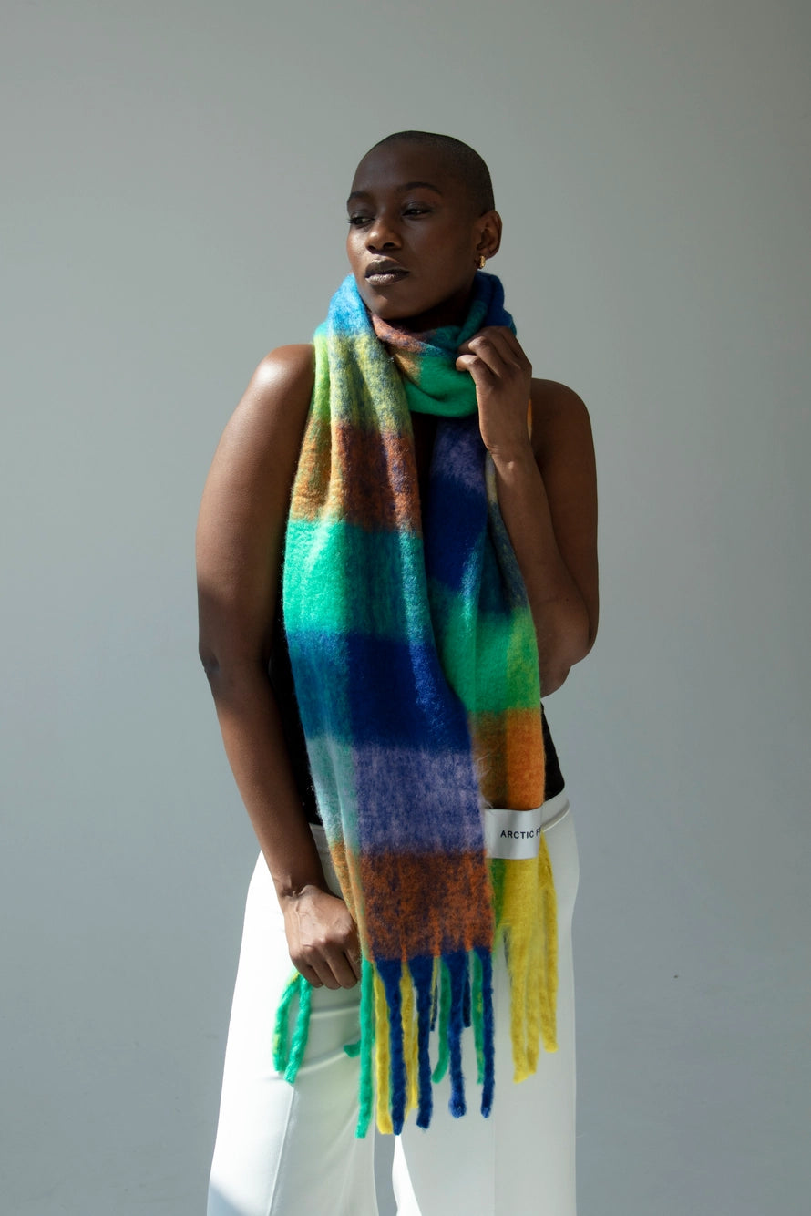 Our signature scarf. Now in 100% recycled materials, boasting the addictive super-soft, brushed texture we’re known for in an XL silhouette. Featuring fringed ends and beloved multi-coloured check designs and a fresh selection of complementary block colours to enhance your store's display. Adorned with our new thickly woven logo patch. Crafted for exceptional insulation against the chill.