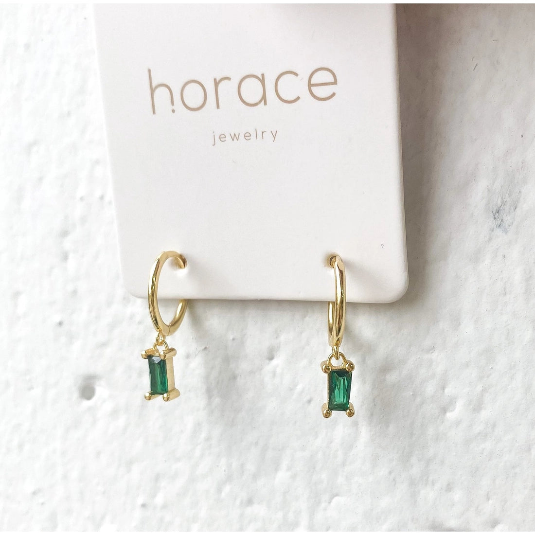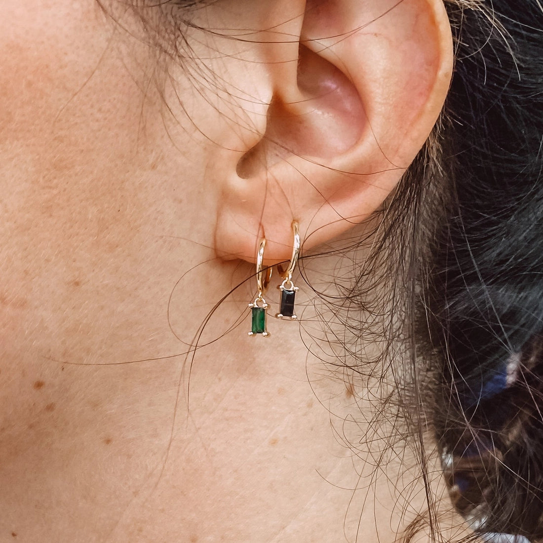 18K gold plated 925 sterling silver 10mm hoop earrings with a green zirconia pendant.