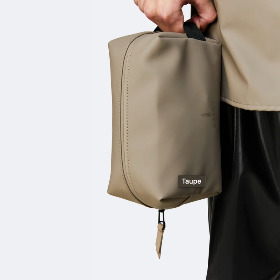 Wash Bag Small is a unisex item featuring a pocket sleeve and one main compartment large enough to fit one's essential toiletries. Wash Bag Small is made from a smooth, waterproof fabric and completed with a webbing grab handle and a water-repellent zipper.